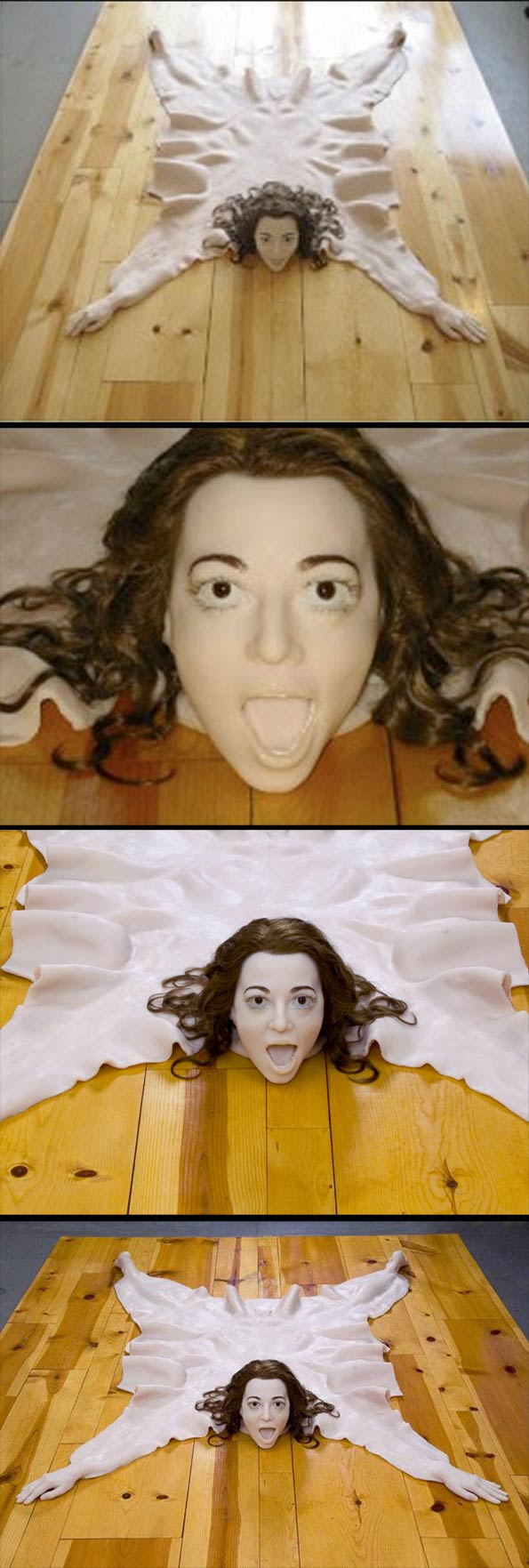 Apakah terjadi jika kulit manusia dijadikan permaidani seperti kulit singa, harimau dan beruang? Inilah yang dilakukan oleh Chrissy Conant melalui karya beliau Crissy Skin Rug. Ianya dihasilkan menggunakan silikon, rambut manusia, getah dan plastik.